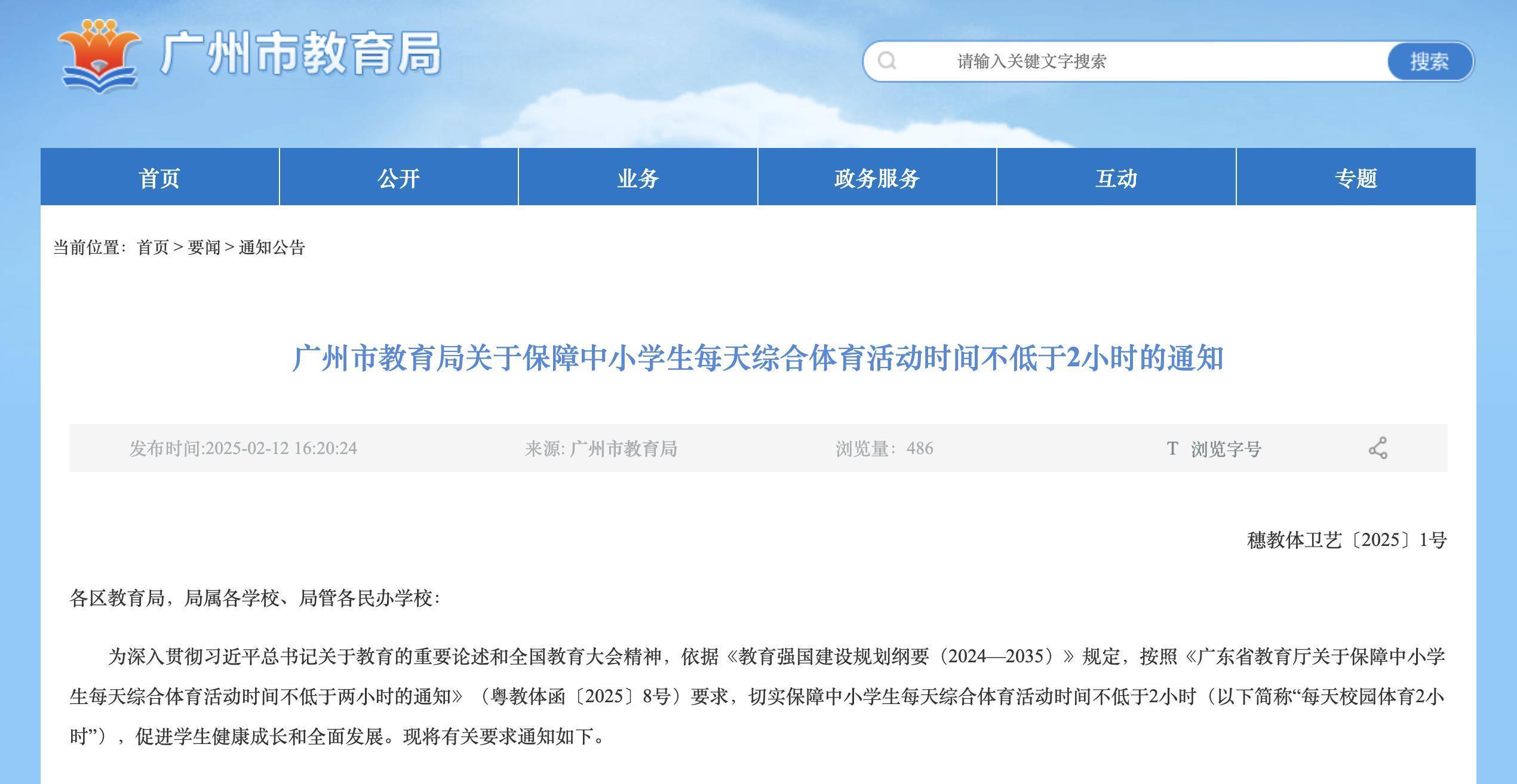 在体育课程安排上,从2025年春季学期起到秋季学期前,广州各区义务教育阶段学校试点落实每天1节体育课的学校比例不少于30%。从2025年秋季学期开始,广州市义务教育阶段学校100%落实每天1节体育课。